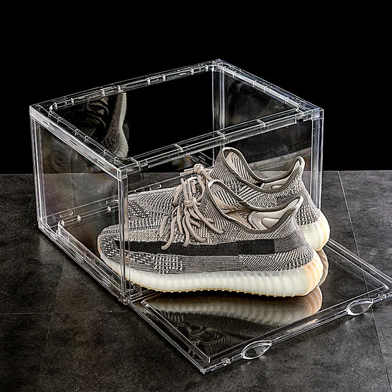 Keep your shoe collection neat, organized, and easily accessible with our premium stackable shoe storage solution. These clear plastic rectangular boxes are designed for maximum visibility, allowing you to quickly locate your favorite footwear at a glance. Perfect for sneakers, heels, flats, and other shoes up to size US 13, each container features a foldable front panel for convenient access and space-saving storage when not in use. The durable, high-quality plastic construction ensures long-lasting protection from dust and moisture while maintaining shape integrity. These versatile organizers can be stacked vertically to maximize closet space, making them ideal for both home storage and retail display. The transparent design also helps preserve your shoes by allowing proper ventilation. Whether you're a sneakerhead protecting your prized collection or simply looking to declutter your closet, these shoe storage boxes offer the perfect blend of functionality and style.