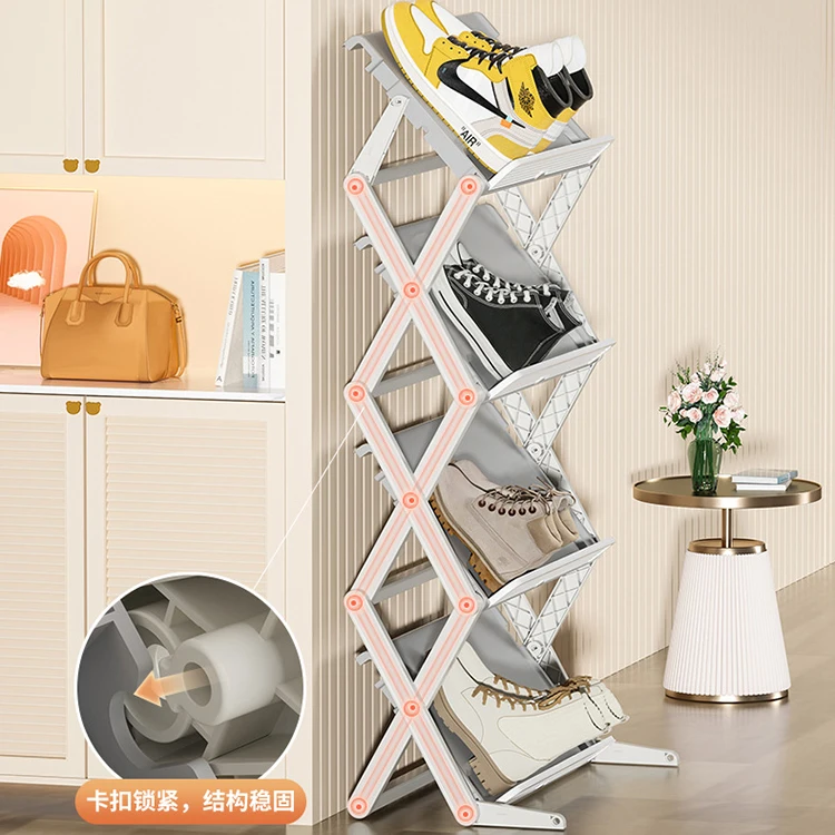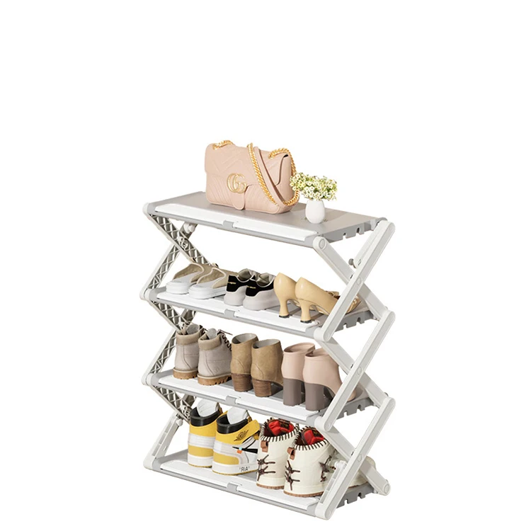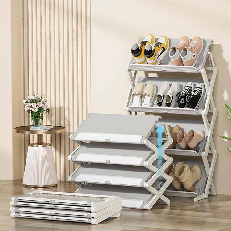 Keep your shoes neatly organized and easily accessible with this innovative slant-type foldable shoe rack. Crafted from durable plastic, this space-saving organizer features an angled design that maximizes storage while allowing you to quickly identify and grab your favorite footwear. The foldable construction makes it easy to set up or collapse for storage when not in use, perfect for small spaces and seasonal rotation. Each tier accommodates multiple pairs of shoes, from flats to heels, while the sturdy frame ensures stable support. The practical household storage solution helps maintain order in entryways, closets, or mudrooms. Its versatile design suits various shoe sizes and styles, making it an ideal choice for families. The easy-to-clean plastic material resists moisture and maintains its appearance over time.