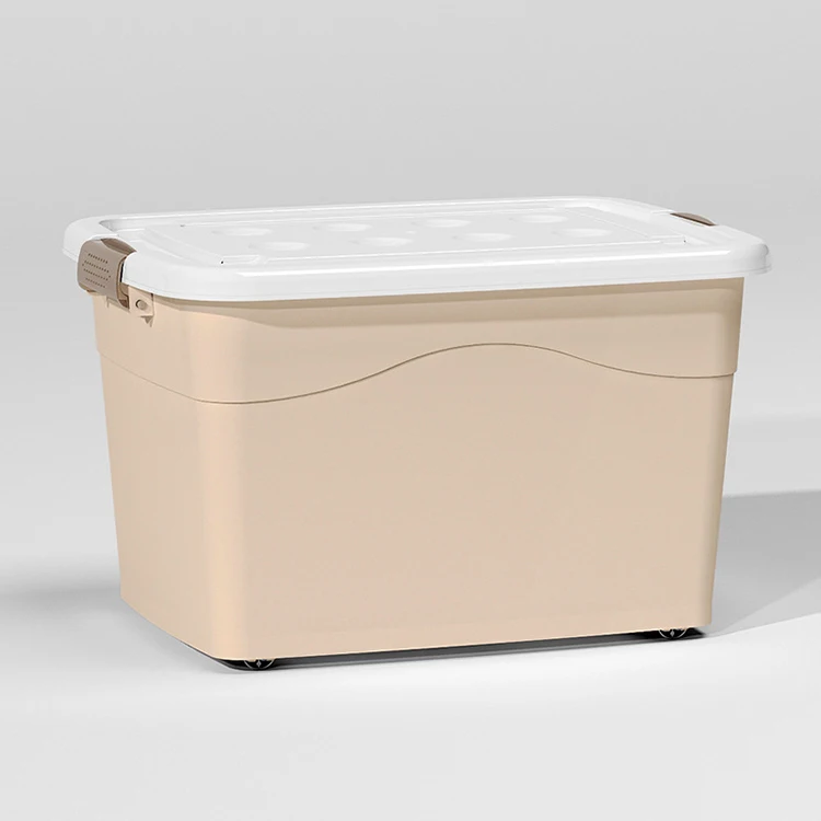 This versatile storage box combines durability with convenience, making it an ideal solution for warehouse organization and clothing storage. Crafted from high-quality materials, this large-capacity bin features sturdy construction that withstands frequent use while protecting contents from dust and moisture. The integrated pulley system allows for effortless mobility, enabling smooth transportation of heavy loads across warehouse floors. Perfect for storing and organizing clothing, textiles, and other retail inventory, its practical design includes reinforced handles for easy lifting and a wide opening for quick access. The stackable structure helps maximize vertical space utilization, while the clean, professional appearance maintains an organized look in any storage facility. Whether used in warehouses, retail stockrooms, or distribution centers, this multi-functional storage solution offers long-lasting performance and efficient space management.