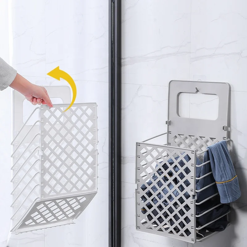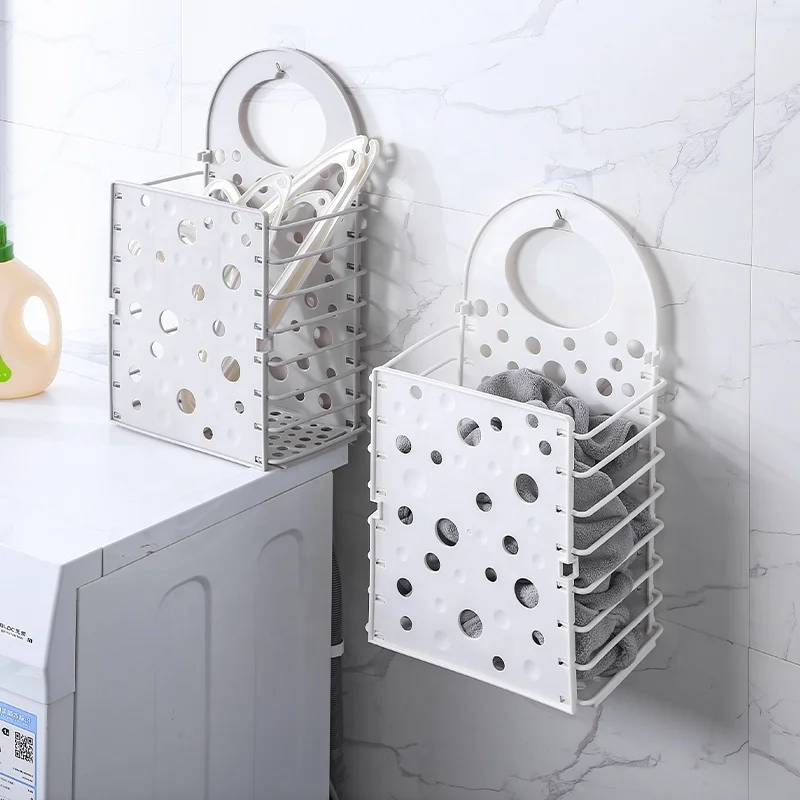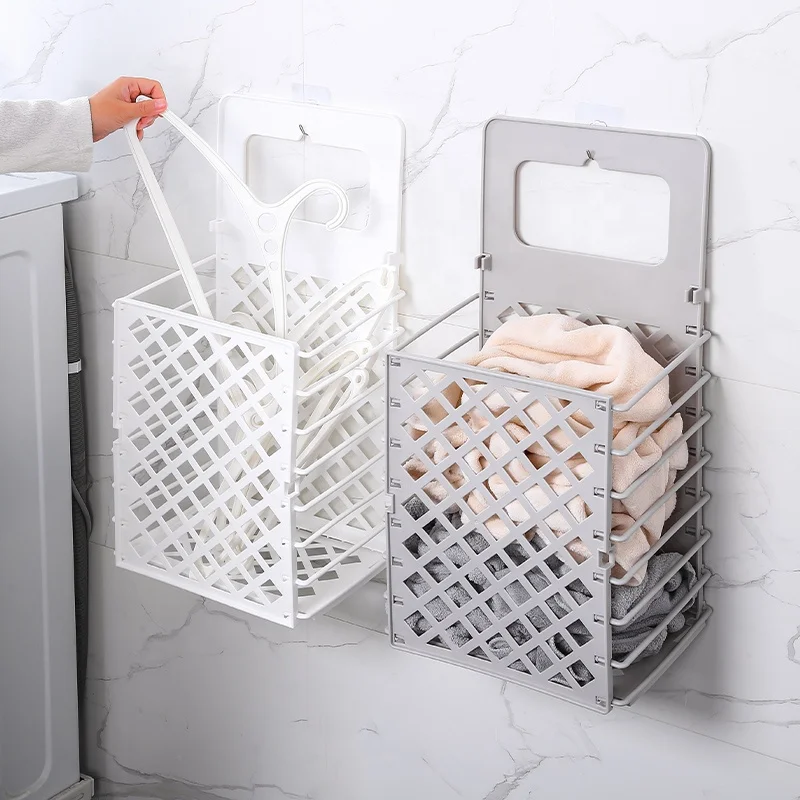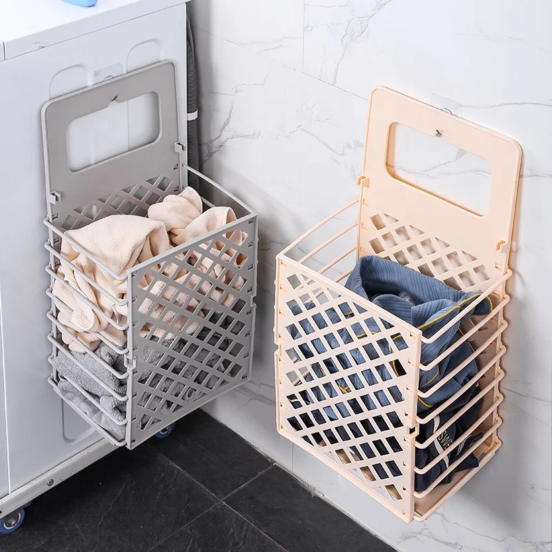 Top Seller Agile Collapsible Plastic Laundry Basket Wall Mounted Bathroom Washing Machine Storage Organizer