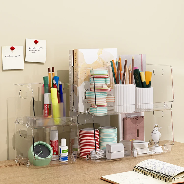 Transparent Plastic Desk Stackable Storage Container Box Makeup Organizer Cosmetic Skin Care Products Organizer