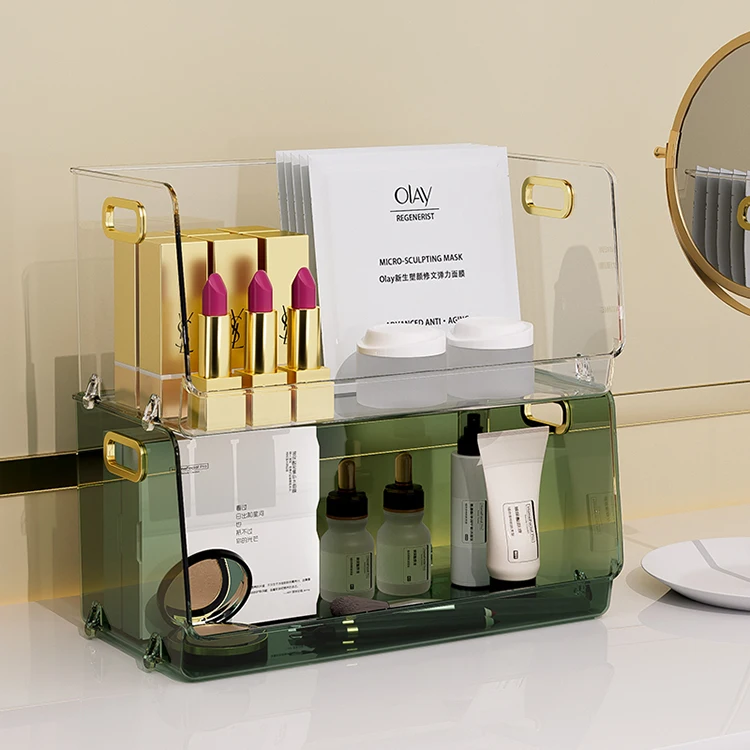 Transparent Stackable Storage Container Desk Organizer Plastic Makeup Cosmetic and Skin Care Products Organizer